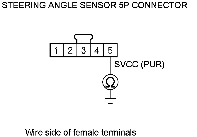 8. Check for continuity between steering angle sensor 5P connector terminal No. 5 and body ground.