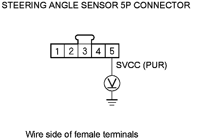 10. Measure the voltage between steering angle sensor 5P connector terminal No. 5 and body ground.
