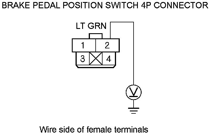 9. Measure the voltage between brake pedal position switch 4P connector terminal No. 2 and body ground.