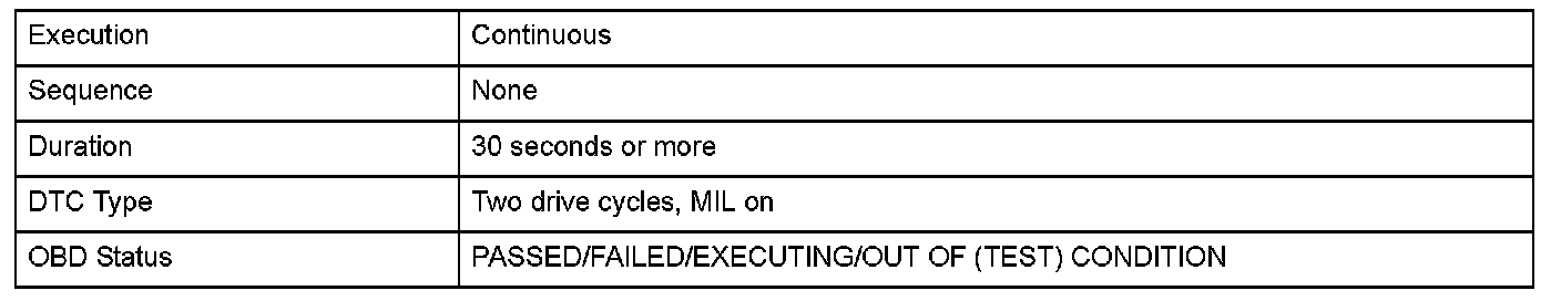 Monitor Execution, Sequence, Duration, DTC Type, OBD Status