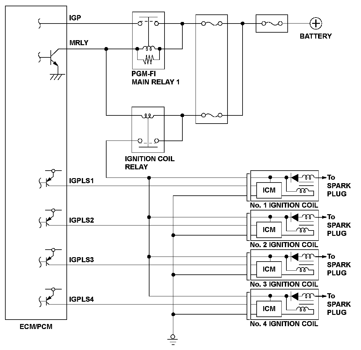 The ignition coil is triggered at the optimum time by the engine control module (ECM)/powertrain control module (PCM). The ECM/PCM detects a malfunction when the engine is running and the return signal does not change for a specified time, the ECM/PCM detects a malfunction and stores a DTC.