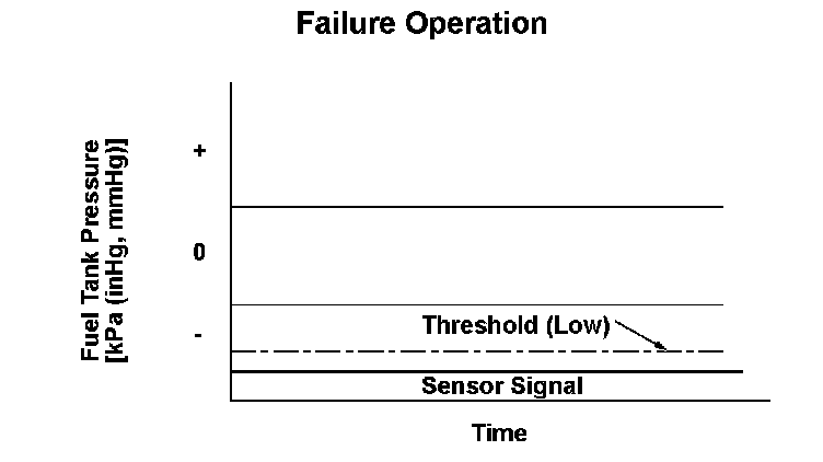 The output from the fuel tank pressure sensor is less than -8 kPa (-2.2 inHg, -55 mmHg) for at least 3.0 seconds.