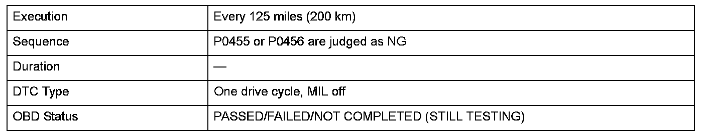When a malfunction is detected in a certain drive cycle and a malfunction of 0.02 inch leak is detected in the same drive cycle, and DTC P0456 is stored, a Pending DTC, a Confirmed DTC, and the freeze data are stored in the ECM/PCM memory. The MIL does not come on.