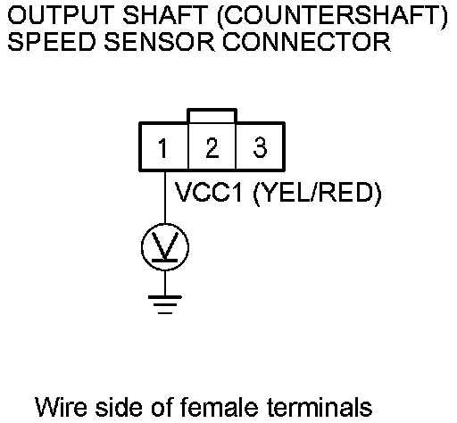 8. Measure the voltage between output shaft (countershaft) speed sensor connector terminal No. 1 and body ground.