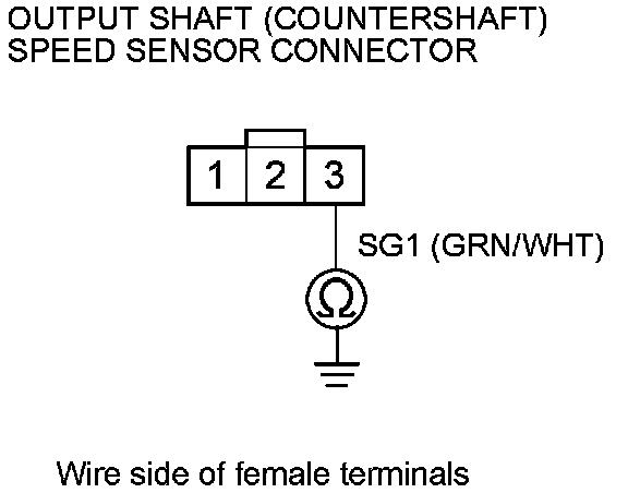 10. Check for continuity between output shaft (countershaft) speed sensor connector terminal No. 3 and body ground.