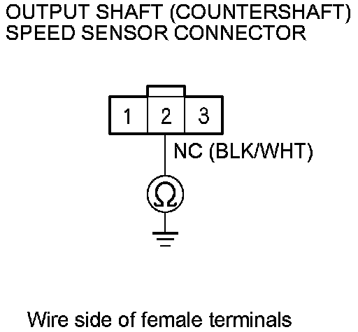 14. Check for continuity between output shaft (countershaft) speed sensor connector terminal No. 2 and body ground.