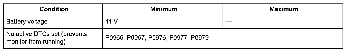 Conditions for setting the DTC