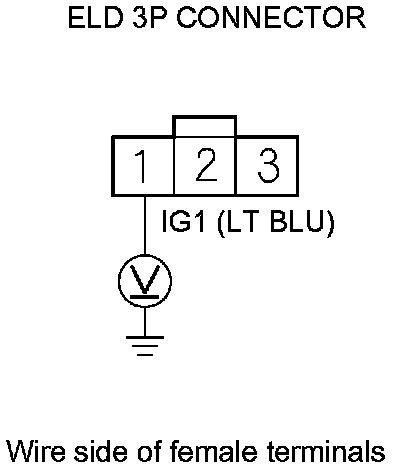 6. Measure the voltage between ELD 3P connector terminal No. 1 and body ground.