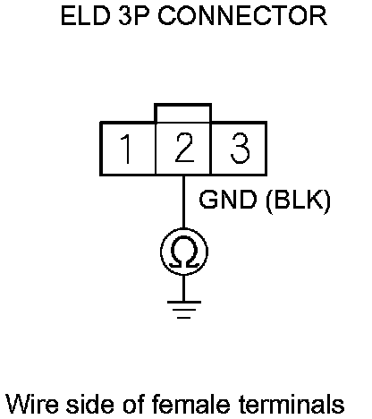 10. Check for continuity between ELD 3P connector terminal No. 2 and body ground.