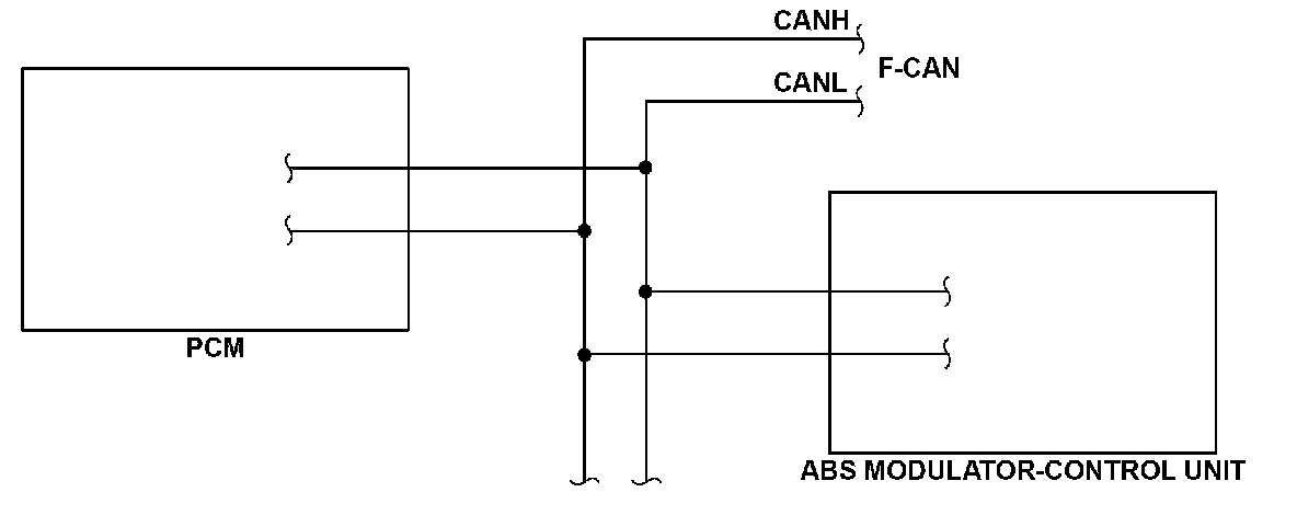 The controller area network (CAN) transmits/receives pulsing signals to/from the control modules simultaneously by using two signal lines (CANH and CANL). When the information is not sent from the ABS modulator-control unit via the F-CAN and this condition continues for a specified time or when the information sent from the ABS modulator-control unit is abnormal and this condition continues for a specified cycle, the powertrain control module (PCM) detects a malfunction and stores a DTC.