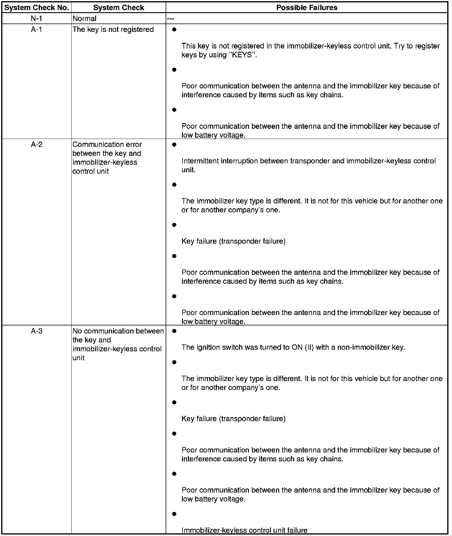 4. If the HDS displays Normal N-1, the immobilizer system is OK at this time, refer to the STATUS LOG. If the HDS displays any other messages, check as follows: