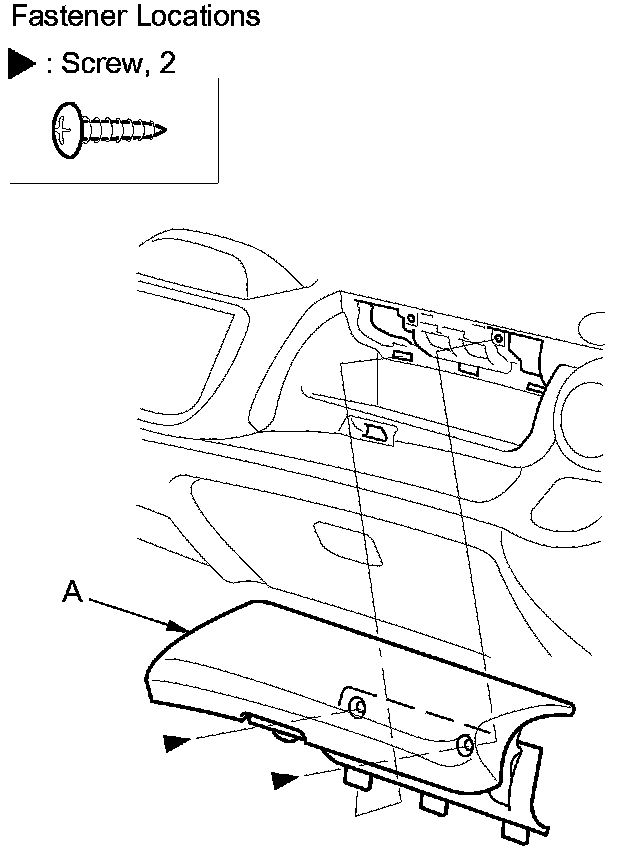 2. Remove the screws, then remove the passenger's upper tray lid (A).