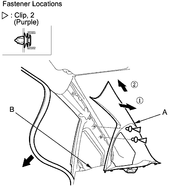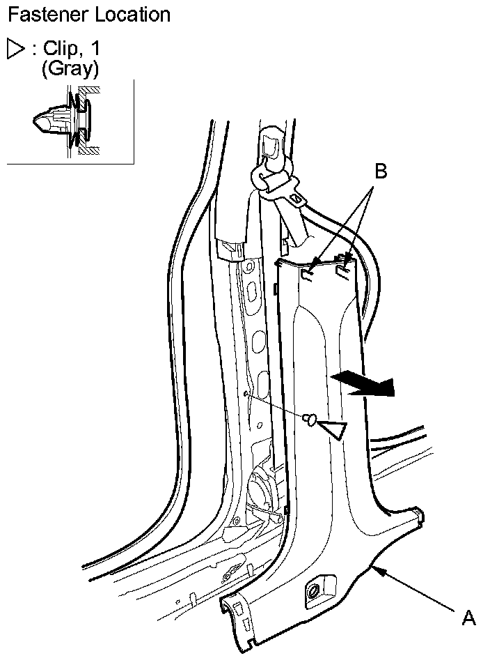 1. Pull the bottom of the trim back by hand to detach the lower clip (B).