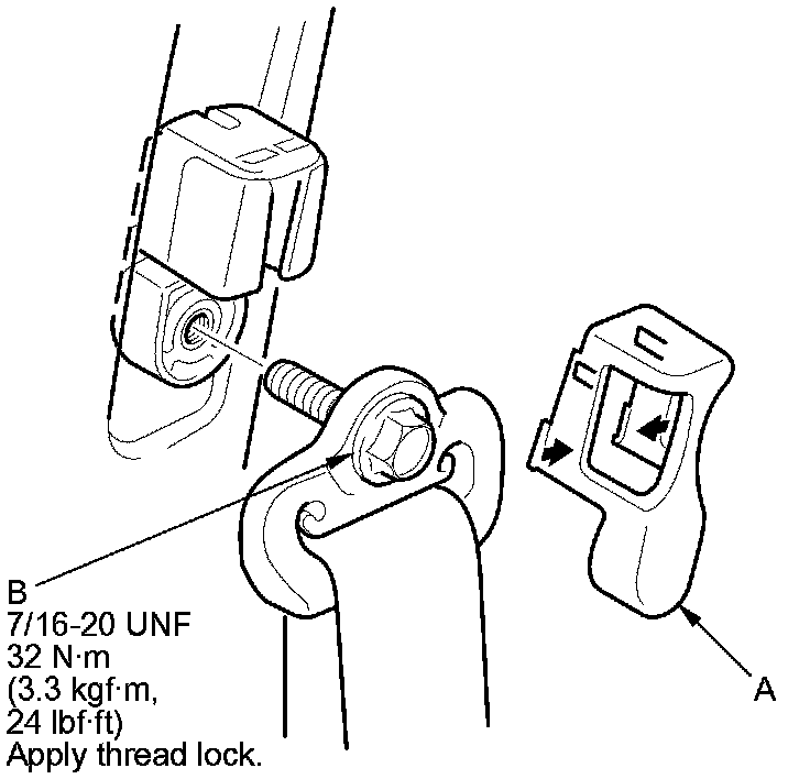 5. Remove the upper anchor cover (A), and remove the upper anchor bolt (B).