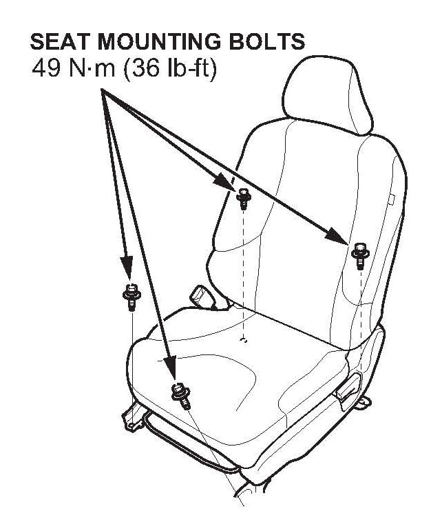 1. Re-torque all four front seat mounting bolts to 49 N.m (36 lb-ft).