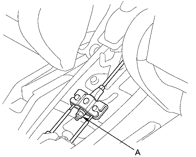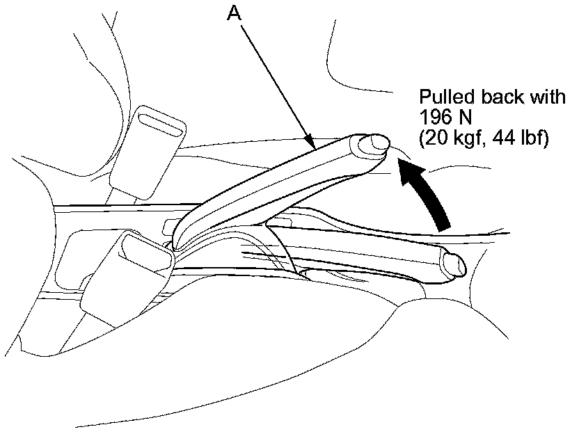 1. Pull the parking brake lever (A) with 196 N (20 kgf, 44 lbf) of force to fully apply the parking brake. The parking brake lever should be locked within the specified number of clicks.