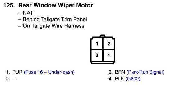 View 125 - Rear Window Wiper Motor Connector View