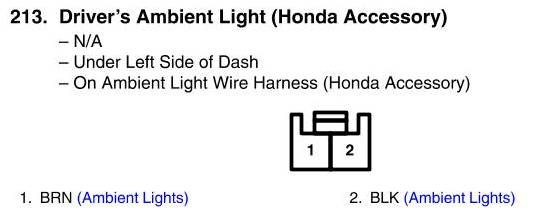 View 213 - Driver's Ambient Light Connector View (Honda Accessory)