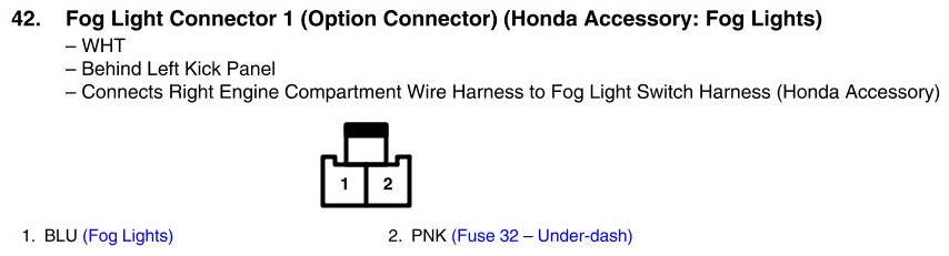 Fog Light Connector 1 (Option Connector) Connector View (Honda Accessory: Fog Lights)
