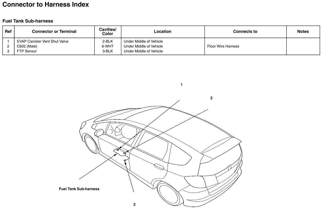 Fuel Tank Sub-harness Connector And Harness Locations