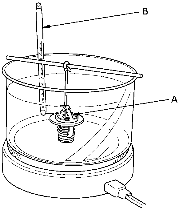 2. Heat the water, and check the temperature with a thermometer. Check the temperature when the thermostat first opens, then check the temperature again when the thermostat is fully open.