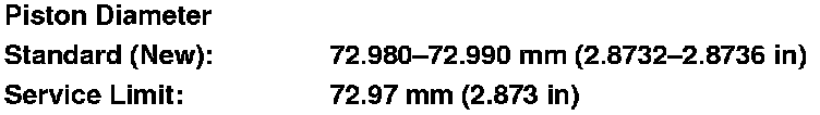 7. Calculate the difference between the cylinder bore diameter and the piston diameter. If the clearance is near or exceeds the service limit, inspect the piston and engine block for excessive wear.