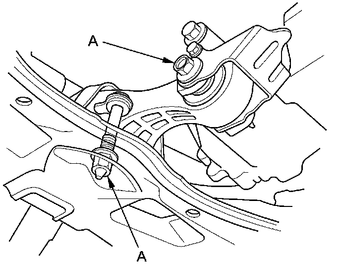 11. Loosen the torque rod mounting bolt and nut (A).