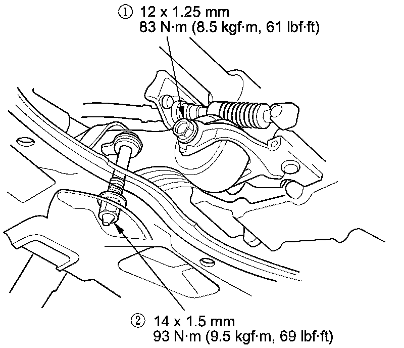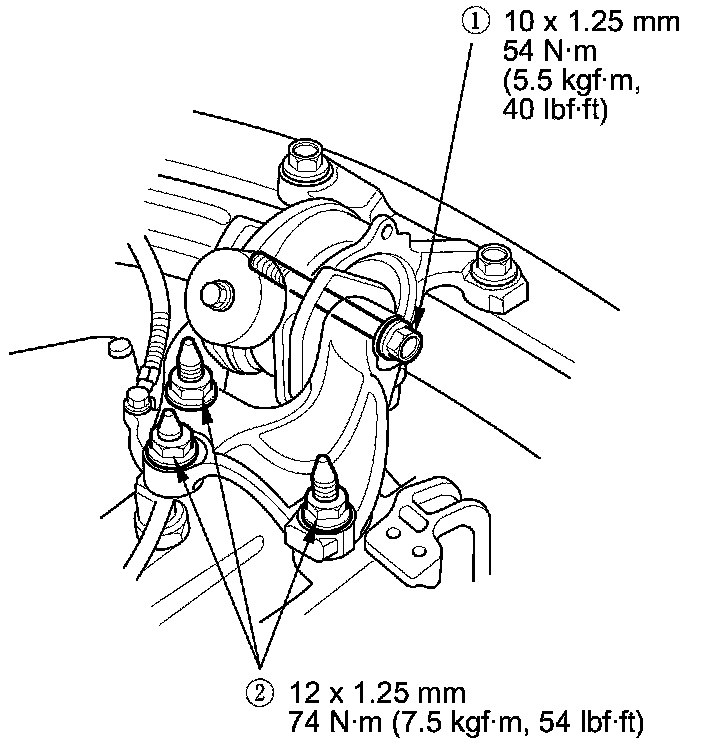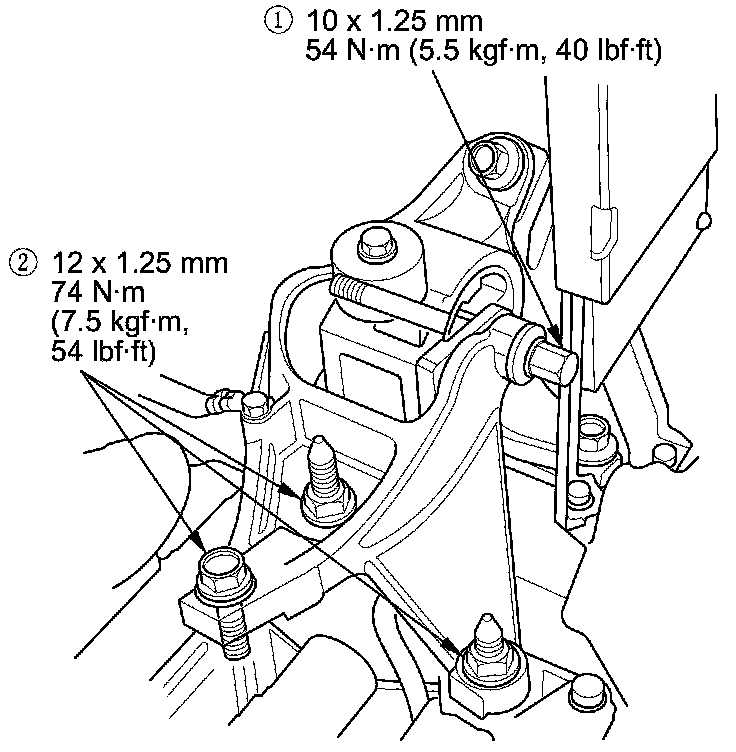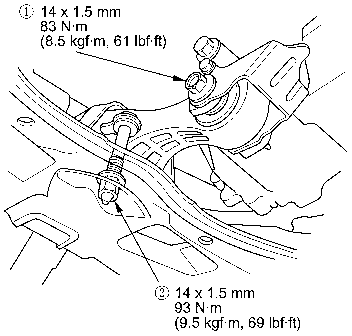 14. Tighten the torque rod mounting bolt and nut in the numbered sequence shown.