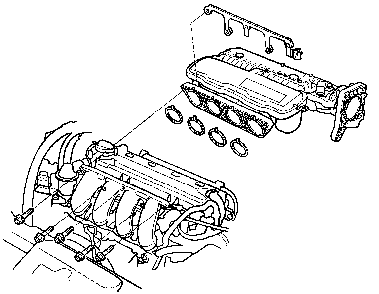 6. Install the engine wire harness connectors and wire harness clamps to the intake manifold chamber.