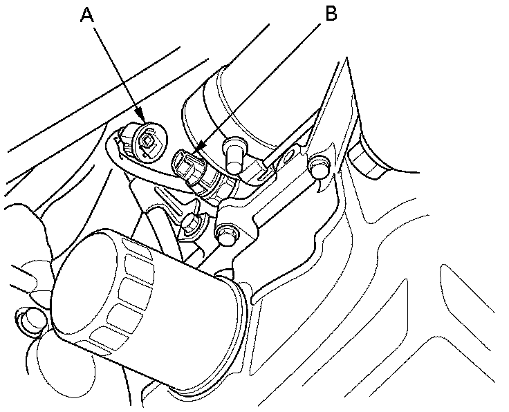 1. Disconnect the oil pressure switch connector (A) from the engine oil pressure switch (B).