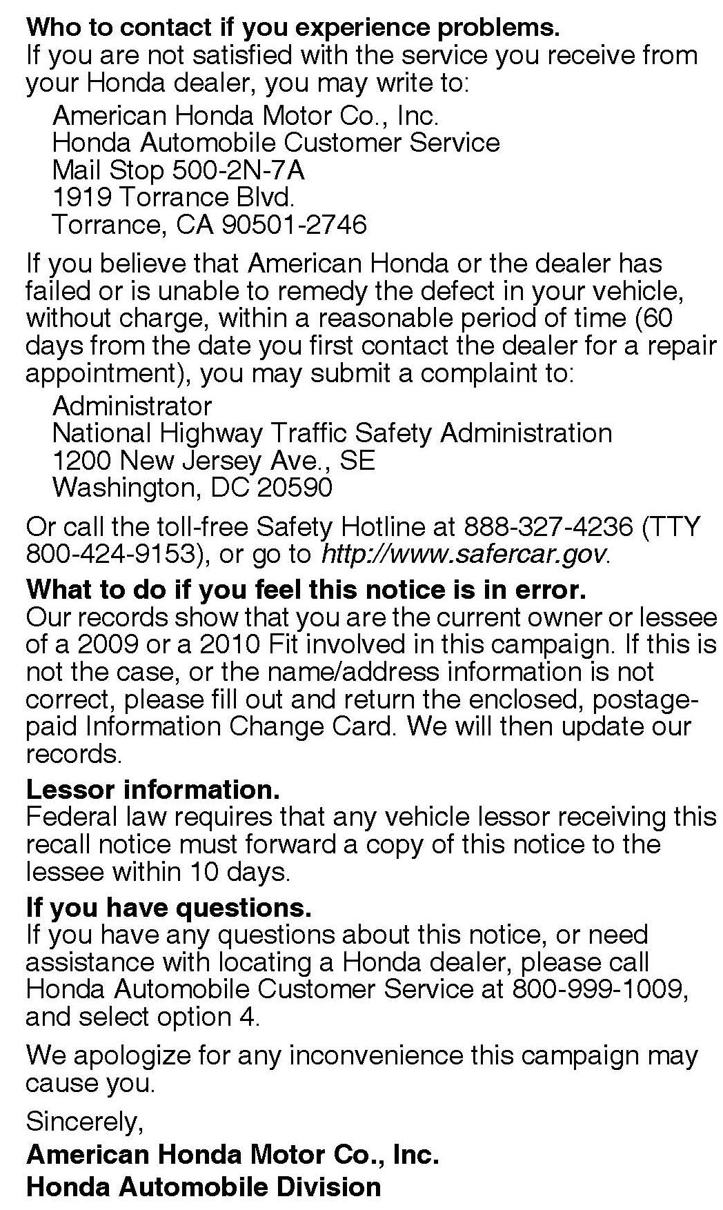 Should a dealership sell an unrepaired vehicle that subsequently causes an injury or damage because of the recalled item, the dealership will be solely responsible to the damaged party, and will be required to defend and indemnify American Honda for any resulting claims. To see if a vehicle in inventory is affected by this campaign, do a VIN status inquiry before selling it.