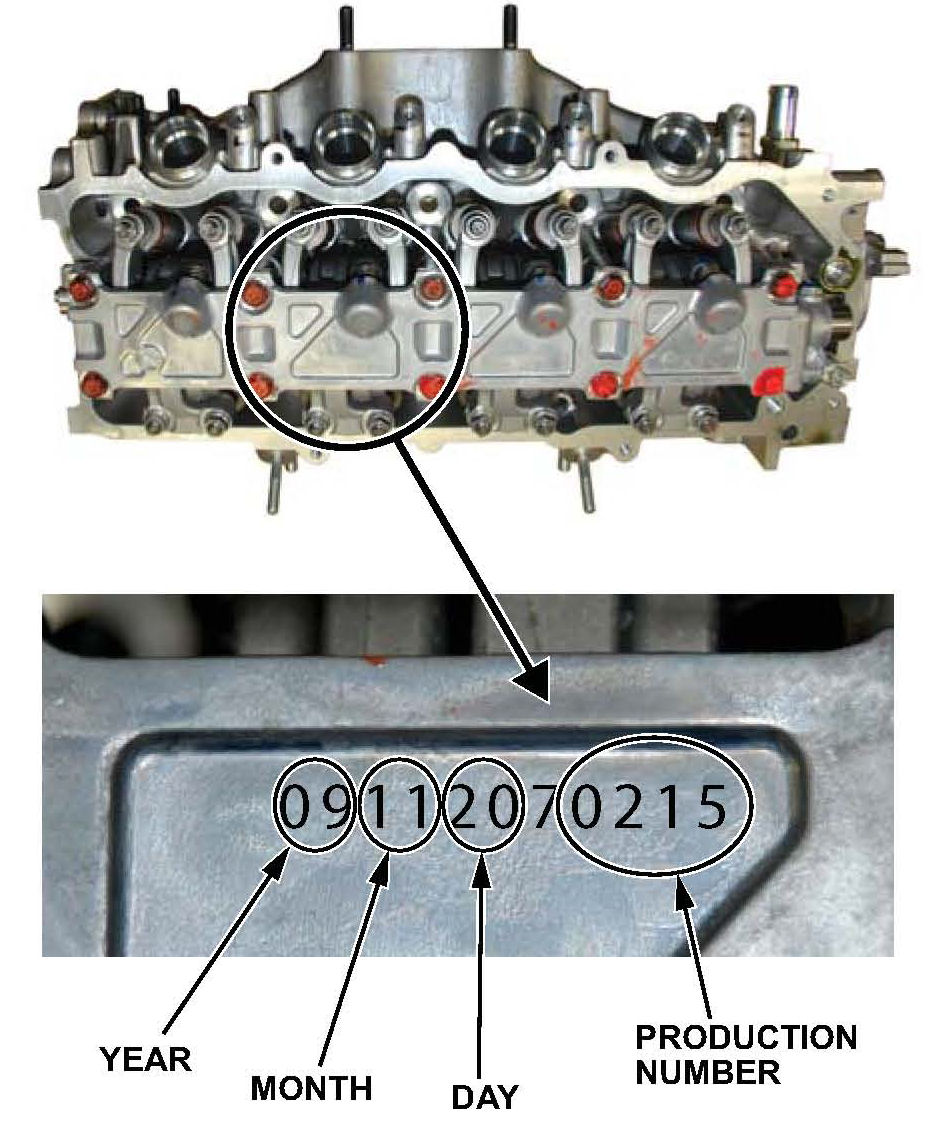8. Check the manufacturing lot number on the rocker arm bridge to see if it was built afler November 20, 2009, production number 215.