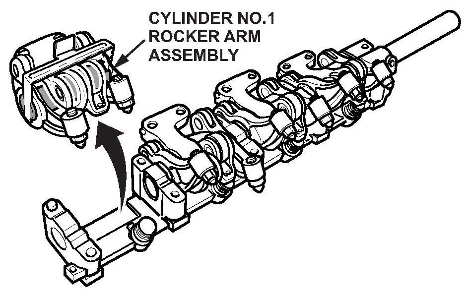 ^ Remove the cylinder No.1 rocker arm assembly from the rocker bridge assembly.