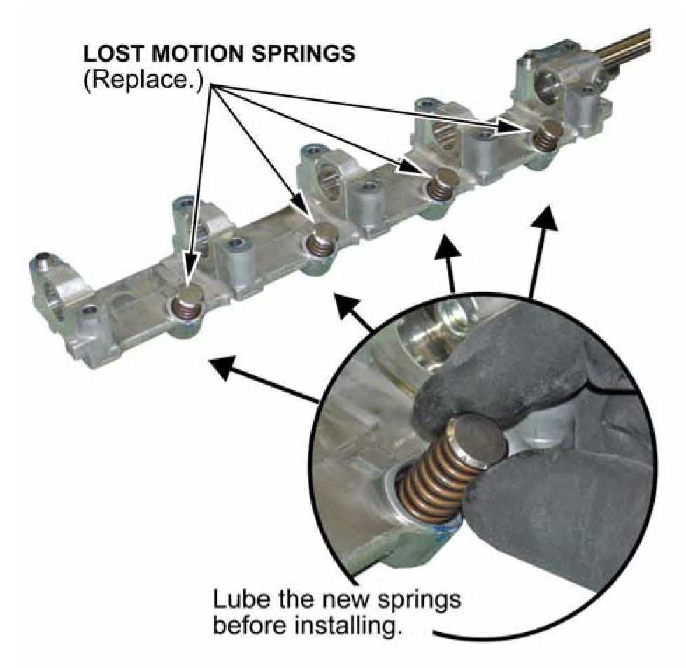 16. Lube the new lost motion springs with fresh engine oil, then install them.