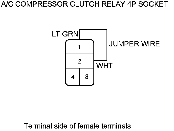 10. Connect A/C compressor clutch relay 4P socket terminals No. 1 and No. 2 with a jumper wire.