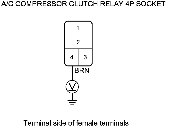 9. Measure the voltage between A/C compressor clutch relay 4P socket terminal No. 1 and body ground.