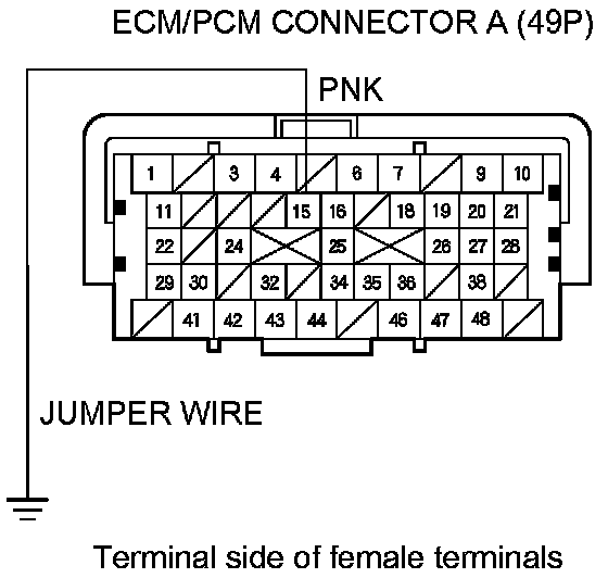 19. Connect the ECM/PCM connector A (49P) terminal No. 15 to body ground with a jumper wire.