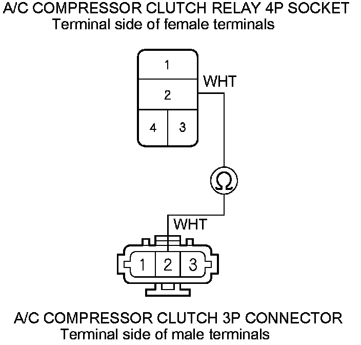 23. Check for continuity between A/C compressor clutch relay 4P socket terminal No. 2 and A/C compressor clutch 3P connector terminal No. 2.