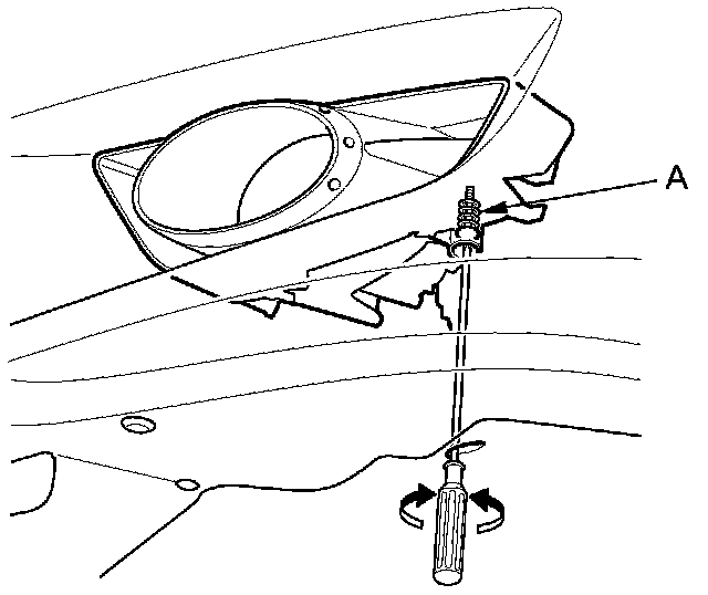 Adjust the fog lights at the adjuster (A).