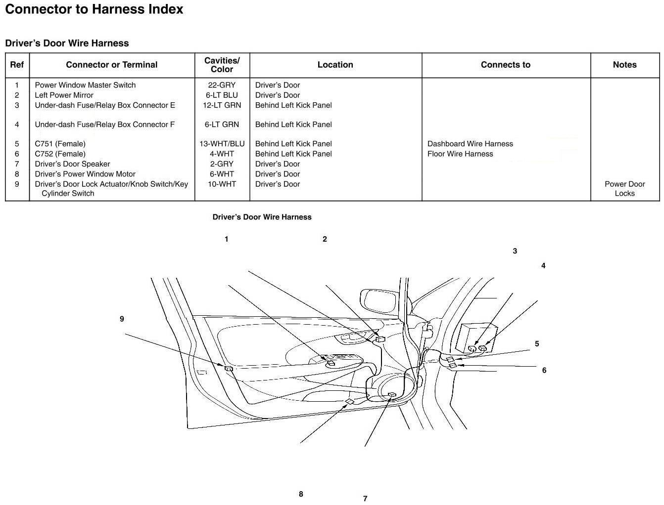 Driver's Door Wire Harness Connector And Harness Locations