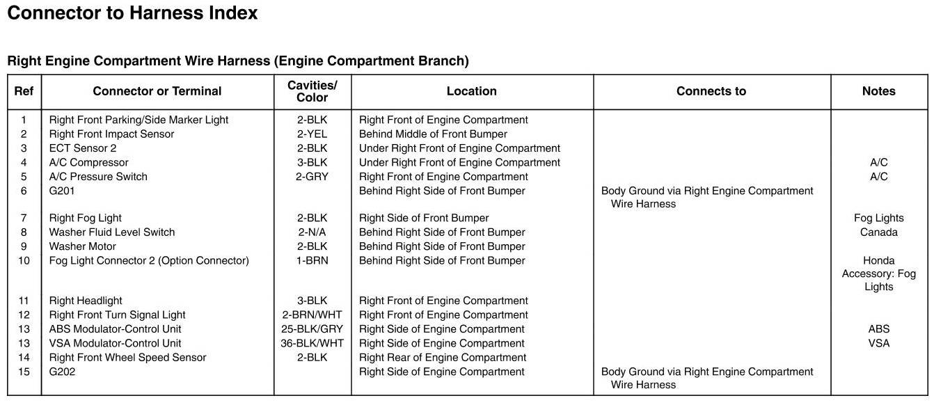 Right Engine Compartment Wire Harness (Engine Compartment Branch) Connector And Harness Locations