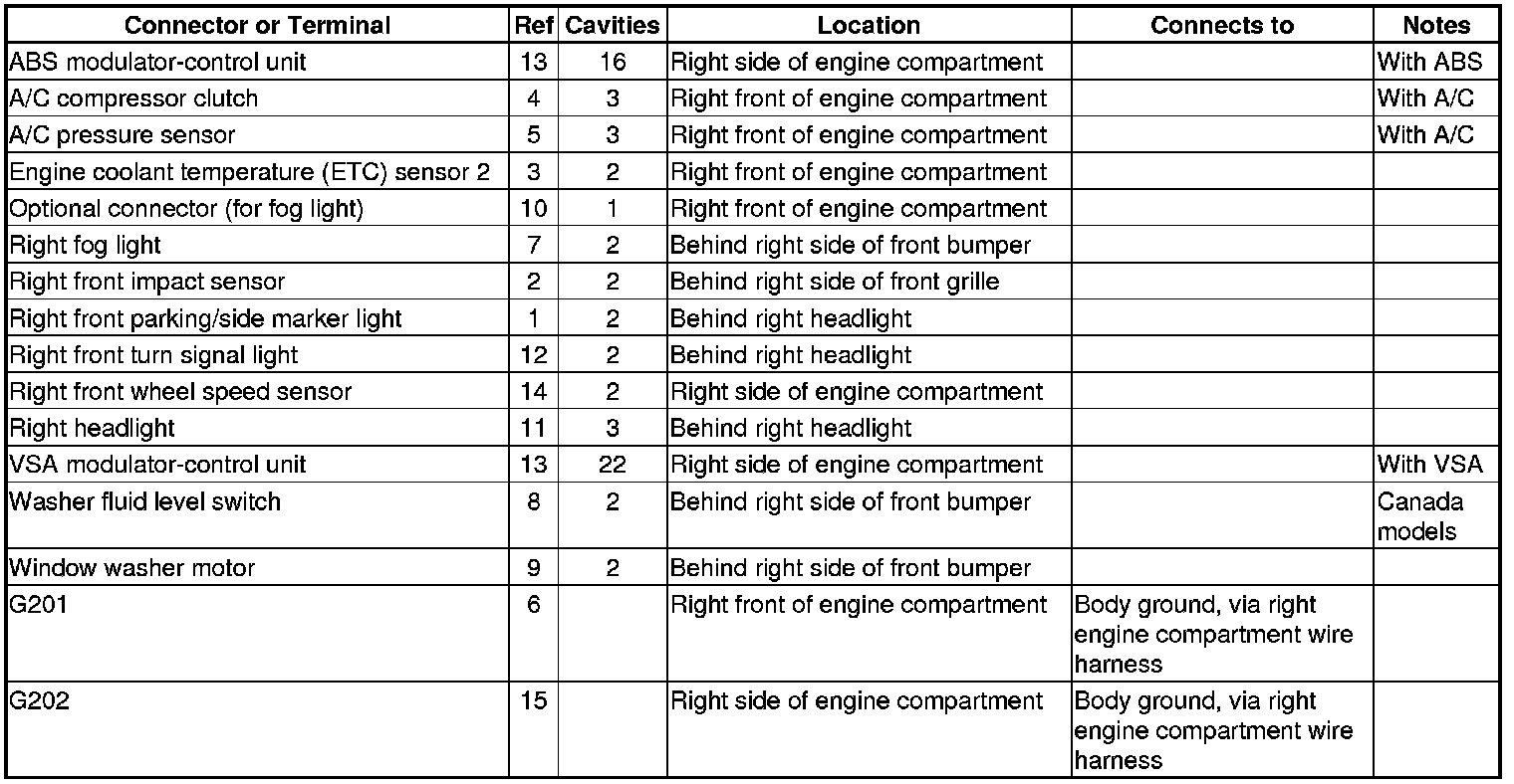 Connector and Harness Locations
