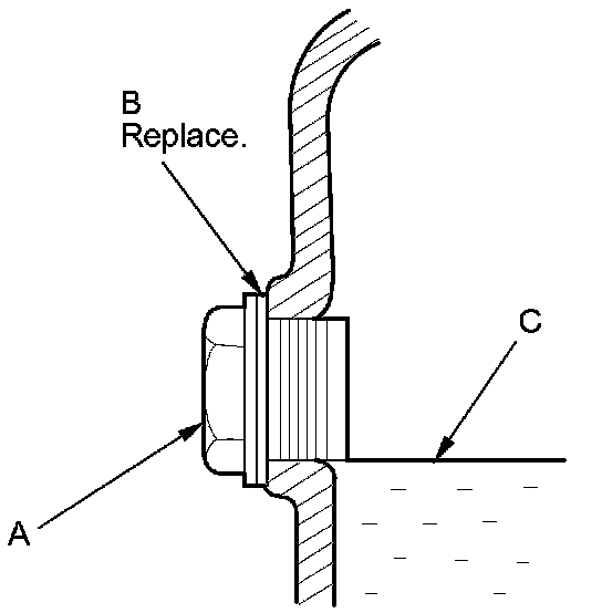 4. Remove the filler plug (A) and sealing washer (B), check the condition of the MTF, and make sure it is at the proper level (C).