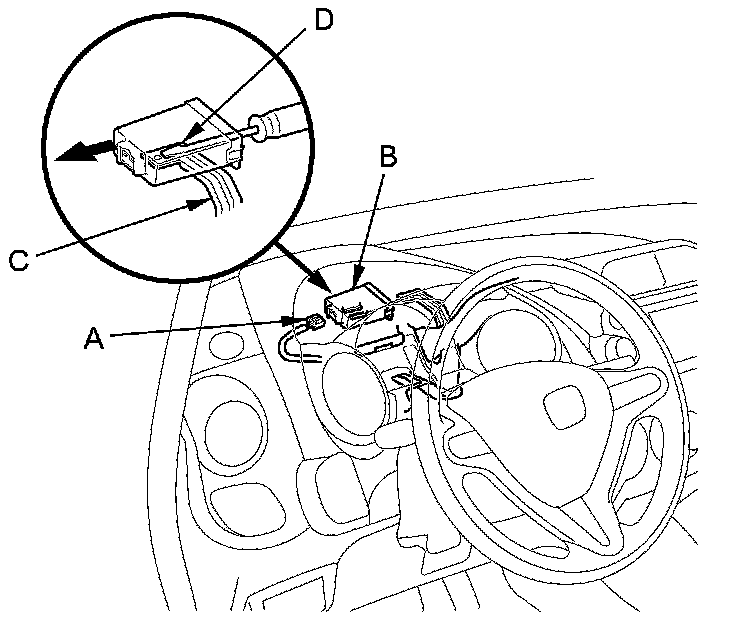 NOTE: While separating the TPMS control unit from the bracket, use a flat-tipped screwdriver (D) to push and release it from the bracket.