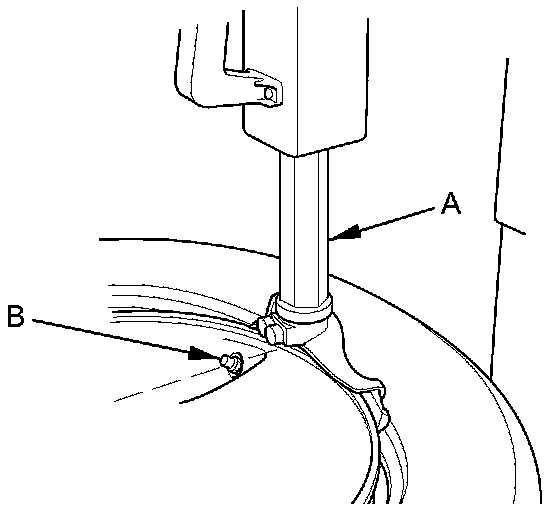 7. Remove and discard the valve stem grommet (A) from the tire pressure sensor (B).