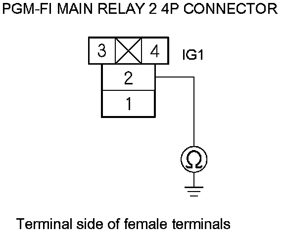50. Check for continuity between PGM-FI main relay 2 4P connector terminal No. 2 and body ground.