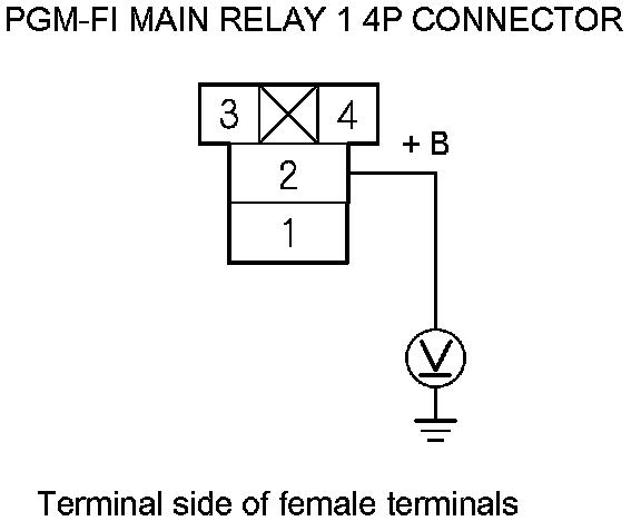 68. Measure the voltage between PGM-FI main relay 1 4P connector terminal No. 2 and body ground.