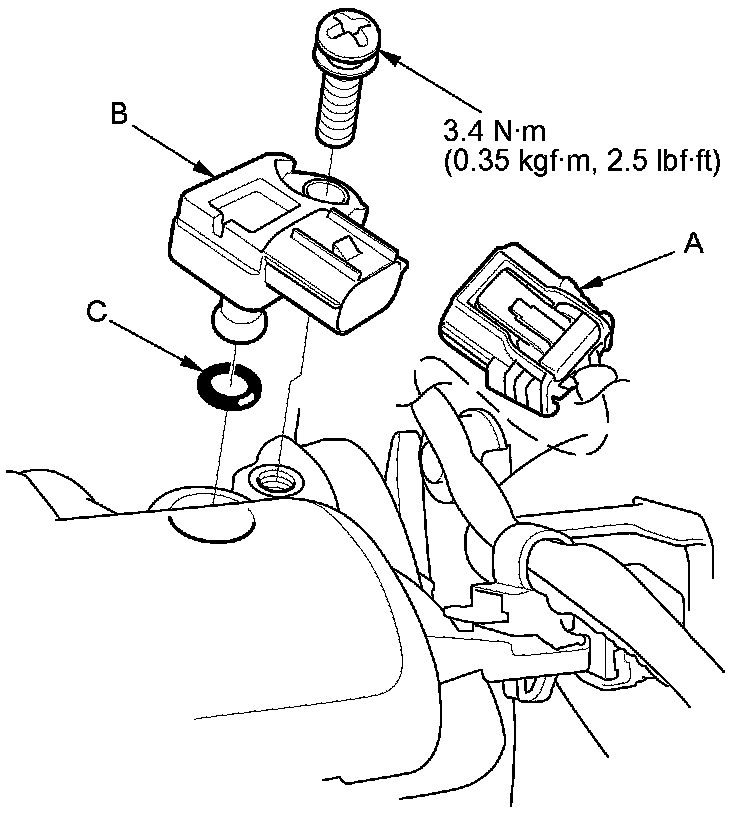 Install the parts in the reverse order of removal with a new O-ring (C).