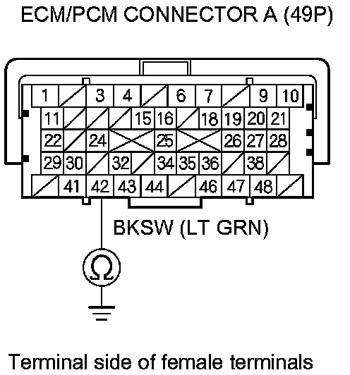 8. Check for continuity between ECM/PCM connector terminal A42 and body ground.