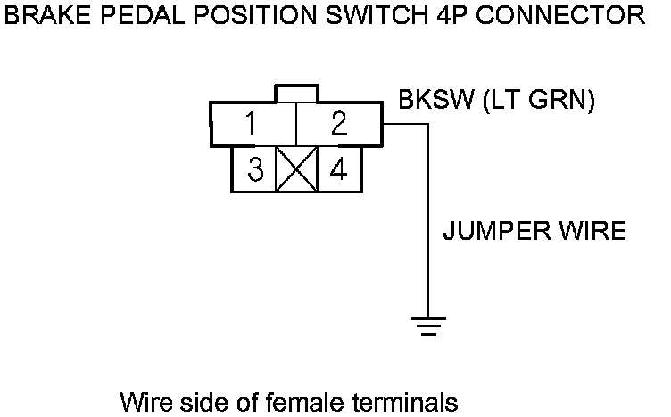 9. Connect brake pedal position switch 4P connector terminal No. 2 to body ground with a jumper wire.